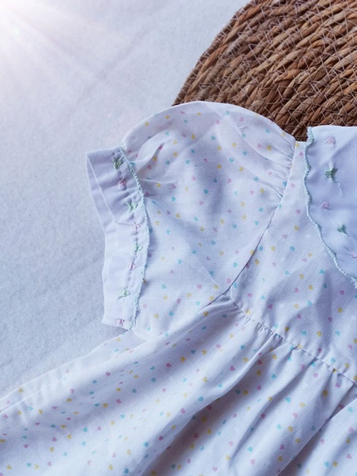 Robe 👣 18 mois, légère, col Claudine, blanche et cœurs - photo numéro 3