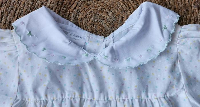 Robe 👣 18 mois, légère, col Claudine, blanche et cœurs - photo numéro 7