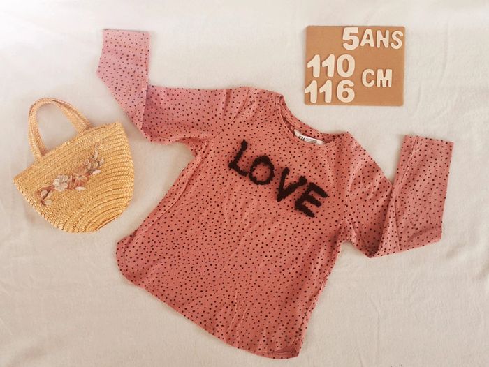 ✨ Tee-shirt manches longues ✨ Rose poudré et points noirs ✨ Inscription en relief noir, love ✨ 5/6ans 110/116cm Très bon état Pour une visite de mon dressing fille 5 ans, c'est ici 😉 : #stephanie89240fille5ans #teeshirt5ans #teeshirtfille #ref068en #h&mfille