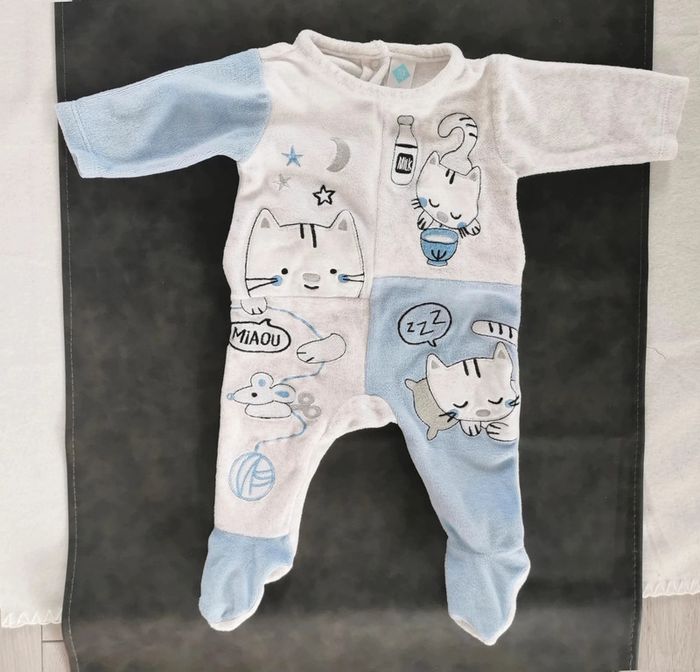 Pyjama 👣 velours, Tex, 0mois, grenouillère - photo numéro 3