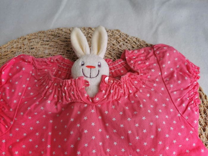 ✨ Haut ✨ 6mois, 67cm ✨ Rose étoiles blanches ✨ Manche courtes élastiques ✨ Devant avec fermeture goutte d'eau ✨ Élasticité au niveau du cou ✨ Un bouton de rechange Très bon état Pour une visite de mon dressing fille 6 mois, c'est ici 😉 : #stephanie89240fille6mois #fille#6mois #fille6mois #ref050en #tapeàl'oeil #tao6mois