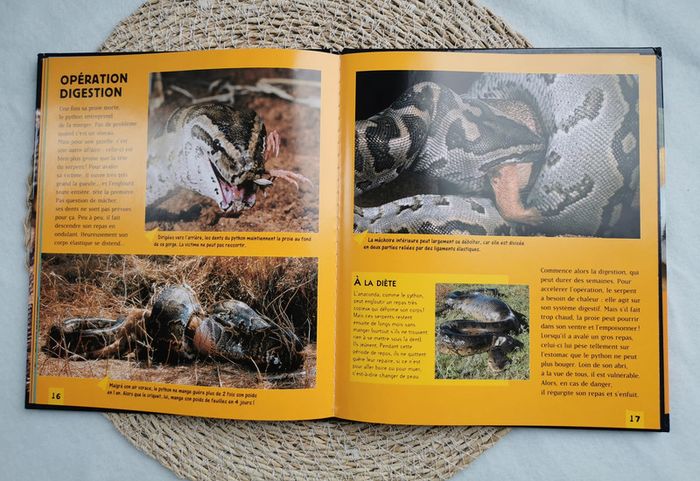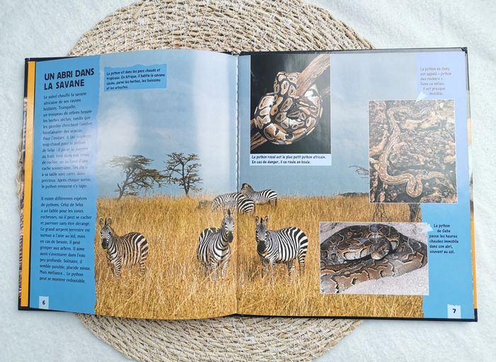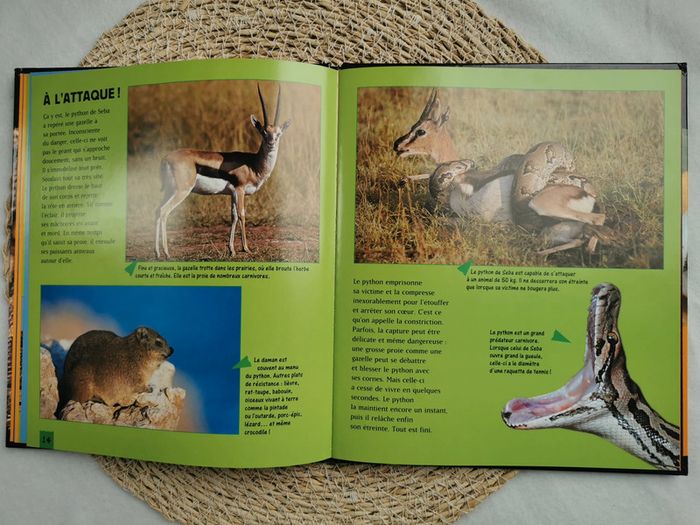 🐍 Terrible prédateur, le python est un énorme serpent, long de plus de 6 m, qui vit dans la savane africaine. 🐍 Comme le boa, c’est un serpent constricteur, qui étouffe ses proies en les enserrant dans ses anneaux puissants. 🐍 Ses mâchoires élastiques lui permettent d’avaler des proies jusqu’à 3 fois plus grosses que lui, tout entières ! 🐍 Il part en chasse la nuit et repère ses proies à la chaleur qu’elles dégagent, même dans le noir complet. ✨ 22X25 cm, ✨ 29 pages ✨ à partir de 7 ans. #stephanie89240livreplusde6ans #ref0R70 #phyton #serpent #livreanimaux