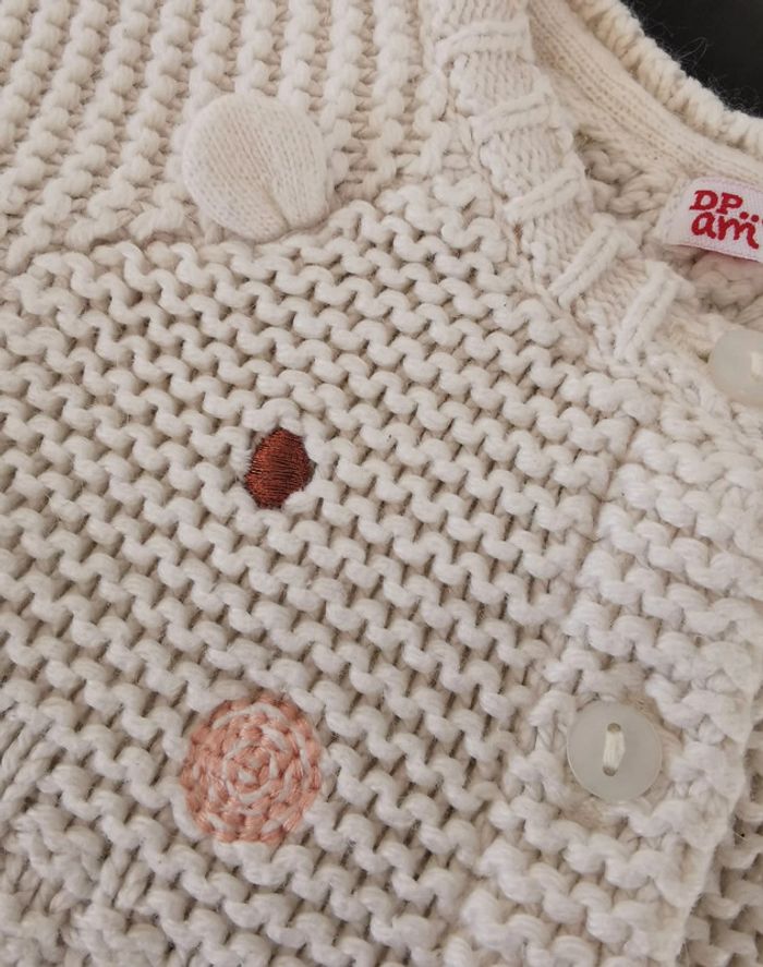 ✨ Gilet ✨ Blanc avec Broderies yeux, joues et oreilles en relief ✨ Jolies finitions poignets, col et bas ✨ 3 boutons devant ✨ Maillages différents en haut et en bas du gilet ✨ DPAM ✨ 3 mois, 59cm ✨ 5%angora Très bon état Pour une visite de mon dressing fille 3 mois, c'est ici 😉 : #stephanie89240fille3mois #fille #3mois #fille3mois #ref0REC50 #dpamfille #giletdpam