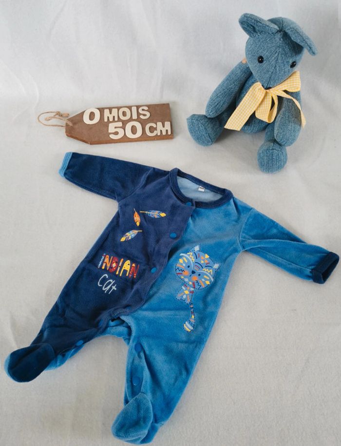 Pyjama 👣 velours, 0mois, ouverture devant, grenouillère