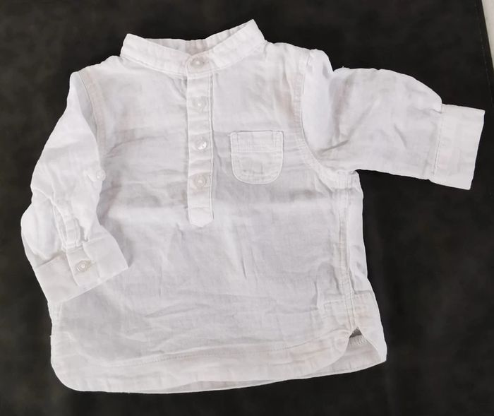 Chemise 👣  blanche, col  mao, kiabi,  1mois - photo numéro 1