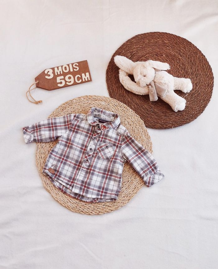 ✨ Chemise ✨ Sergent major ✨ 3mois, 59cm ✨ 4 boutons et 2 pressions ✨ Broderie lapin 🐇 + étoile 🌟 ✨ Animaux au col 👉 Une petite tâche, très pâle tout en bas, cf photo svp. Très bon état Pour une visite de mon dressing garçon 3 mois, c'est ici 😉 : #stephanie89240garçon3mois #sergentmajor #garçonsergentmajor #ref041en #sergentmajorchemise #sergentmajor3mois