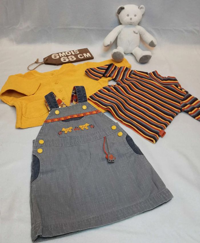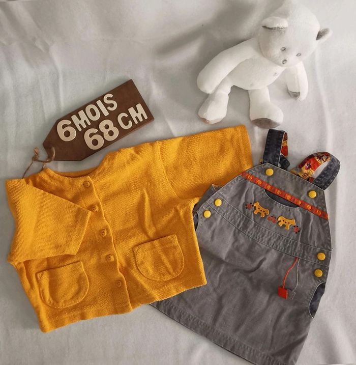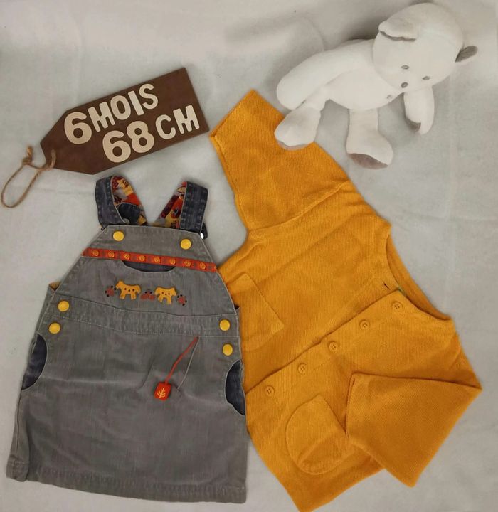 Ensemble 6mois/67cm 💫 Gilet 💫 ✨ DPAM ✨ Couleur jaune orangée /moutarde ✨ 5 boutons ✨ 2 poches ✨ 1 bouton de rechange 💫 Robe 💫 ✨ Adélie ✨ Grise, jaune, et orange ✨ 2 pressions de chaque côté ✨ Bretelles avec pressions 👉 Une micro éraflure d'1 millimètre, sur le bas de la robe, cf dernière photo svp 💫 Tee-shirt 💫 ✨ Manches longues ✨ 2 pressions à l'épaule ✨ Chaud ✨ 100% coton ✨ 5 couleurs Très bon état Pour une visite de mon dressing fille 6 mois, c'est ici 😉 : #stephanie89240fille6mois #fille #6mois #fille6mois #adélie #giletdpam #dpam #giletfille #robe #ref072en