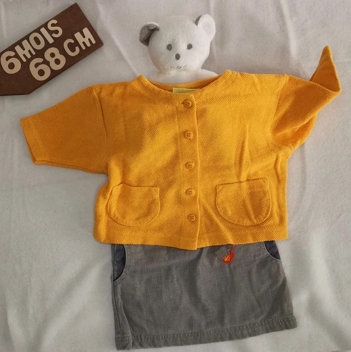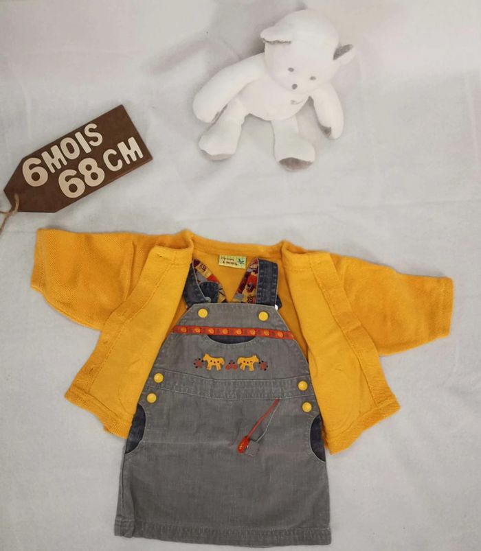 Ensemble 👣 robe et  tee-shirt  adélie et  gilet du pareil  au  même, 6mois/67cm - photo numéro 1