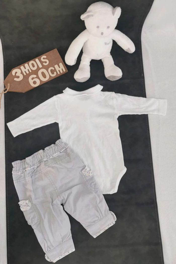 Ensemble  👣 pantalon  tape à  l'œil gris mauve  clair  avec  bodie blanc tout  simplement 3mois/60cm - photo numéro 2