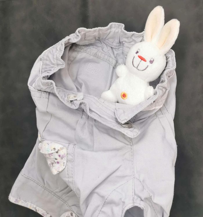 Ensemble  👣 pantalon  tape à  l'œil gris mauve  clair  avec  bodie blanc tout  simplement 3mois/60cm - photo numéro 12