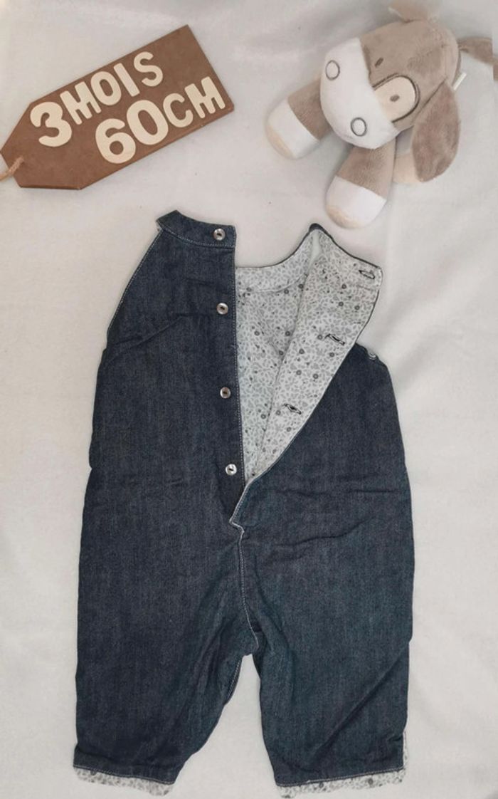 Salopette 👣  Natalys,  bleu jean,  3mois/60cm - photo numéro 3