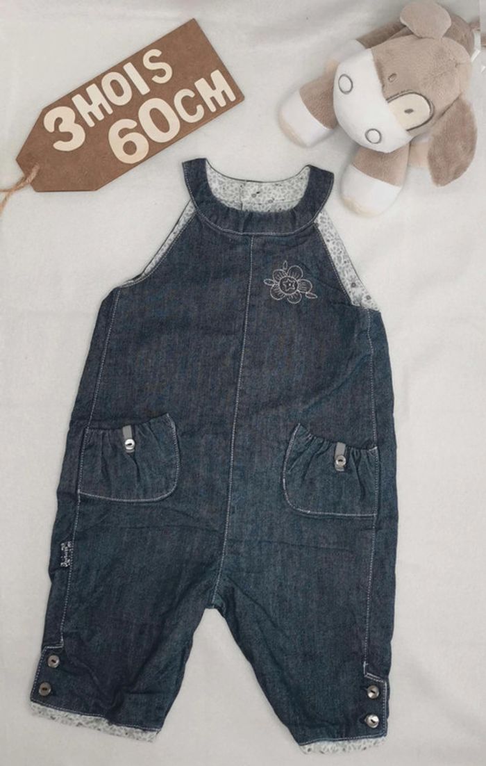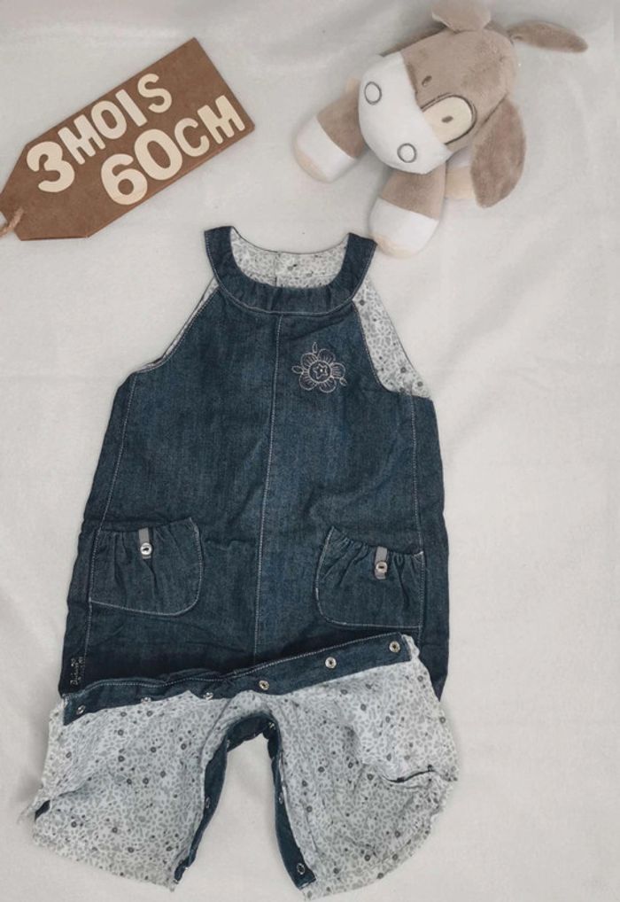 Salopette 👣  Natalys,  bleu jean,  3mois/60cm - photo numéro 1