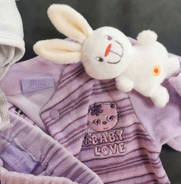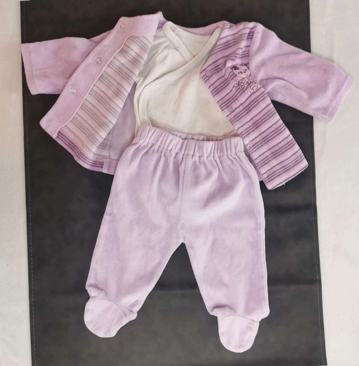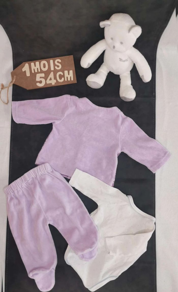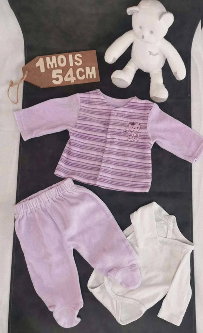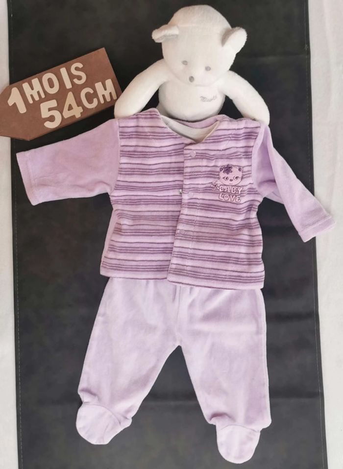 Ensemble 3 pièces 💫 Haut 💫 ✨ Polaire ✨ Violet, rose ✨ Ouverture devant ✨ 3 pressions ✨ Bisous d'ange Très bon état 💫 Bas 💫 ✨ Polaire ✨ Violet, rose ✨ Avec pieds ✨ Bisous d'ange Très bon état Taille 0/3mois inscrite sur l'étiquette mais c'est plutôt du 1mois /54cm 💫 Bodie 💫 ✨ Ouverture totale par le devant ✨ Tex ✨ 1mois/54cm Bon état Pour une visite de mon dressing fille 1 mois, c'est ici 😉 : #stephanie89240fille0_1mois #fille #1mois #fille1mois #bisousdange #pyjama #pyjama2pièces #ref0105en