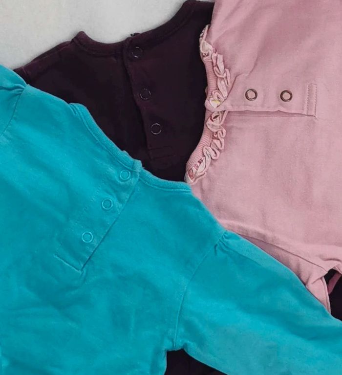Tee-shirt  👣 lot de 3,  manches  longues, colorés, 6mois/67cm - photo numéro 3