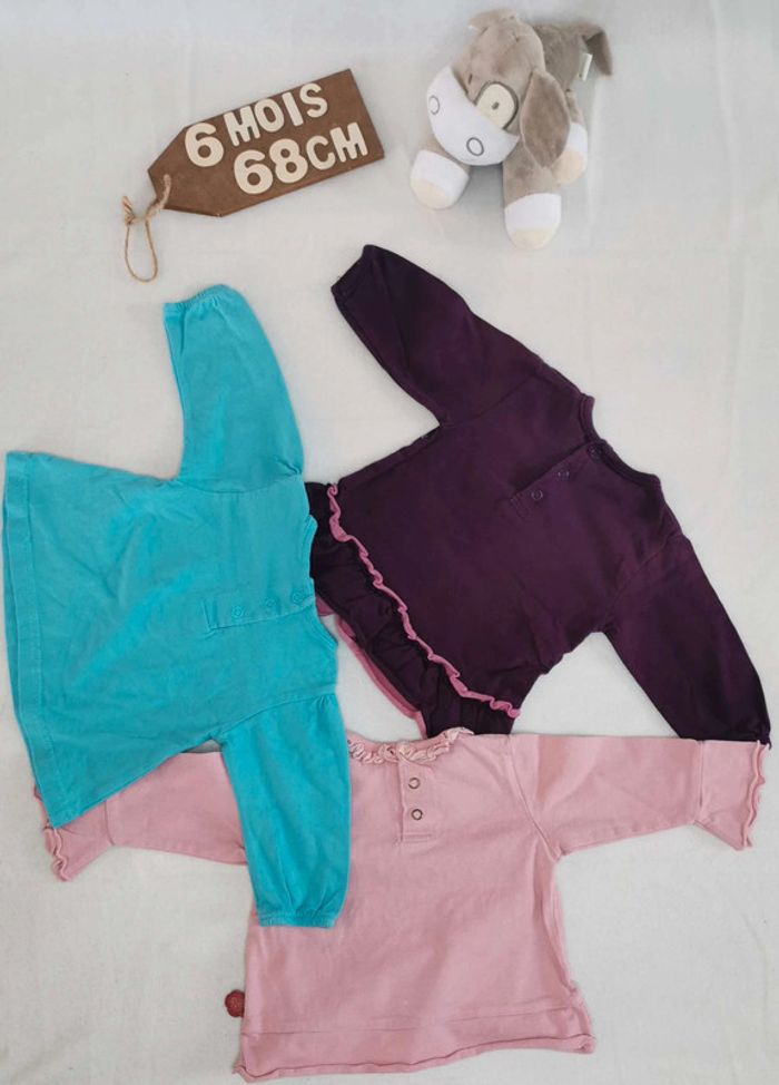 Tee-shirt  👣 lot de 3,  manches  longues, colorés, 6mois/67cm - photo numéro 10