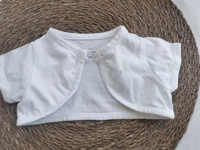 Gilet court 👣 boléro, manches courtes, blanc, mini Adélie, 3 mois - photo numéro 1