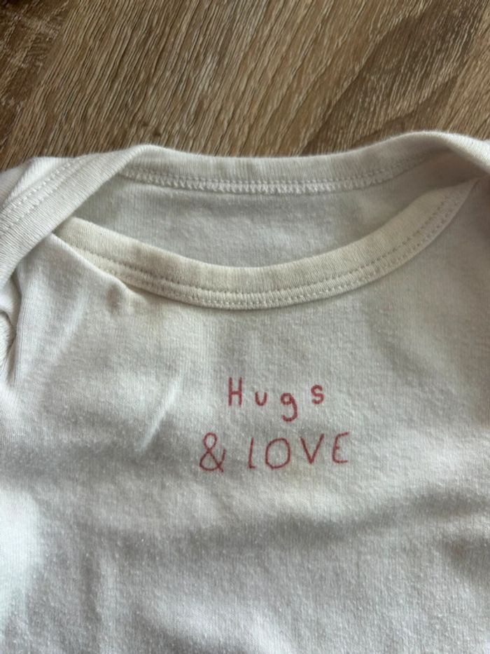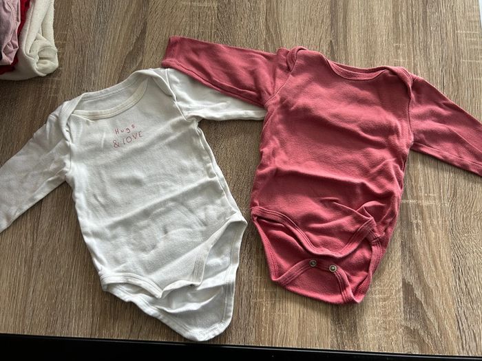 Lot 2 body manches longues Pas d’étiquettes mais convient pour un enfant de 6/9 mois Petite tache (2ème photo)