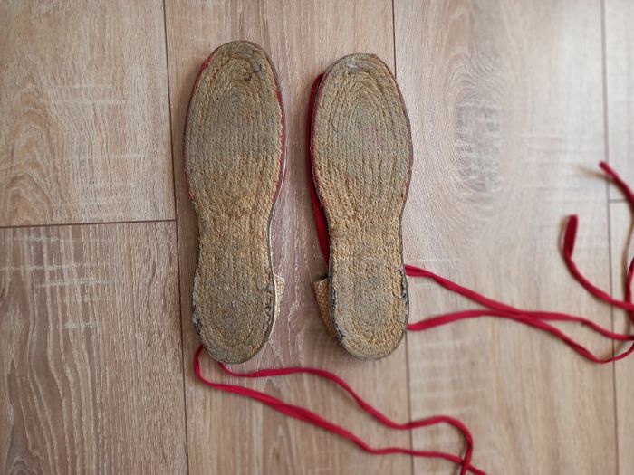 ESPADRILLE T 37 A LACET // ESPADRILLE DE BARCELONE Toile de coton, semelle entièrement en jute  // EN BON ETAT // COULEUR ROUGE