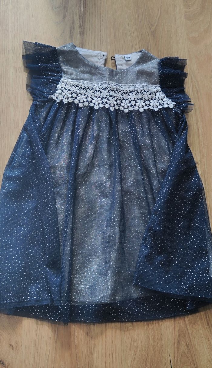 Ensemble robe bleu nuit pailleté avec son gilet gris a été ensemble 12 mois