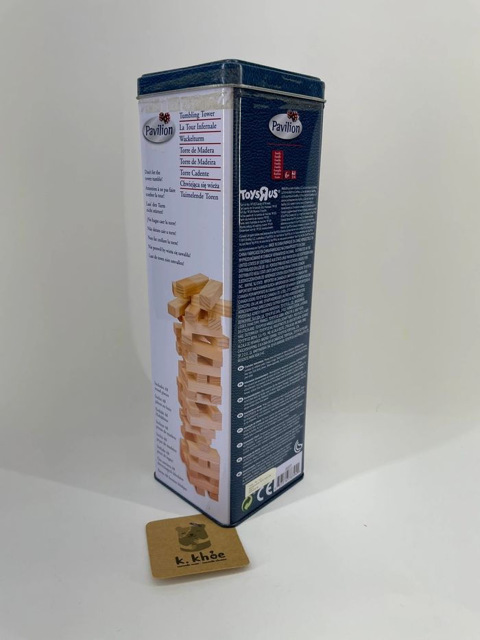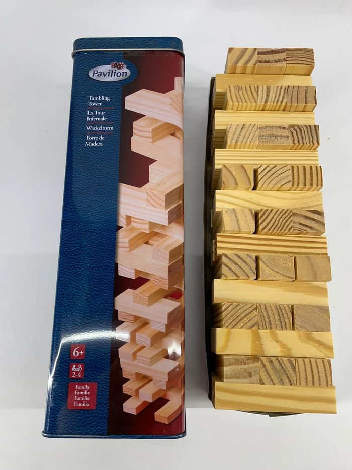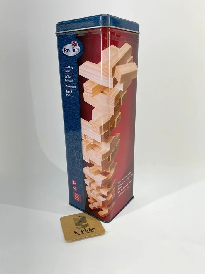 Construisez une tour en empilant trois blocs de bois par étage et en changeant de sens à chaque niveau. Une fois tous les blocs posés, chaque joueur fait s'élever la tour en prenant un bloc à un niveau inférieur. Celui qui fait s'écrouler la tour a perdu ! Jeu favorisant l'adresse et la patience. 48 Bûchettes de bois clair.