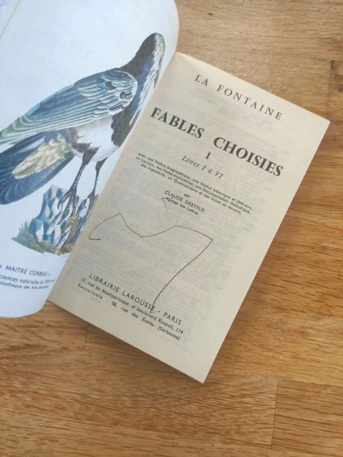 Nouveau classique Larousse, fables choisies tome 1. Édition 1971. Couverture et pages intérieures jaunies, à signaler une trace de stylo sur la 4e page. Sinon etat correct vu son âge #vulariLivresVintage