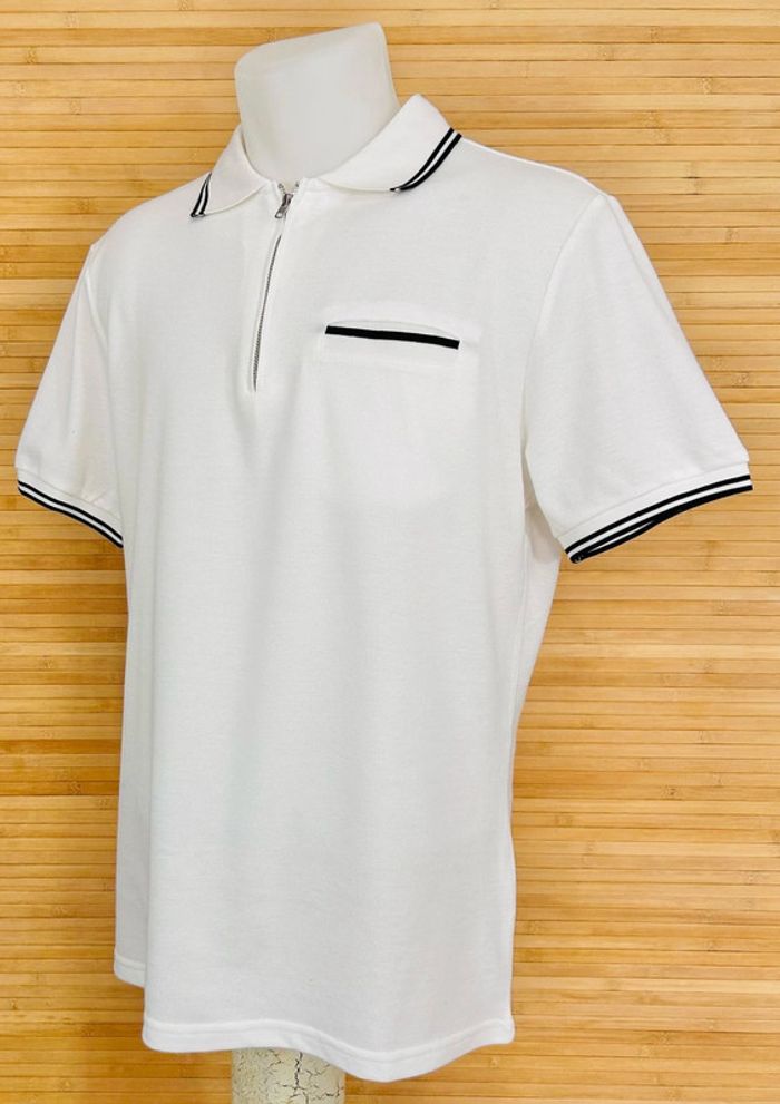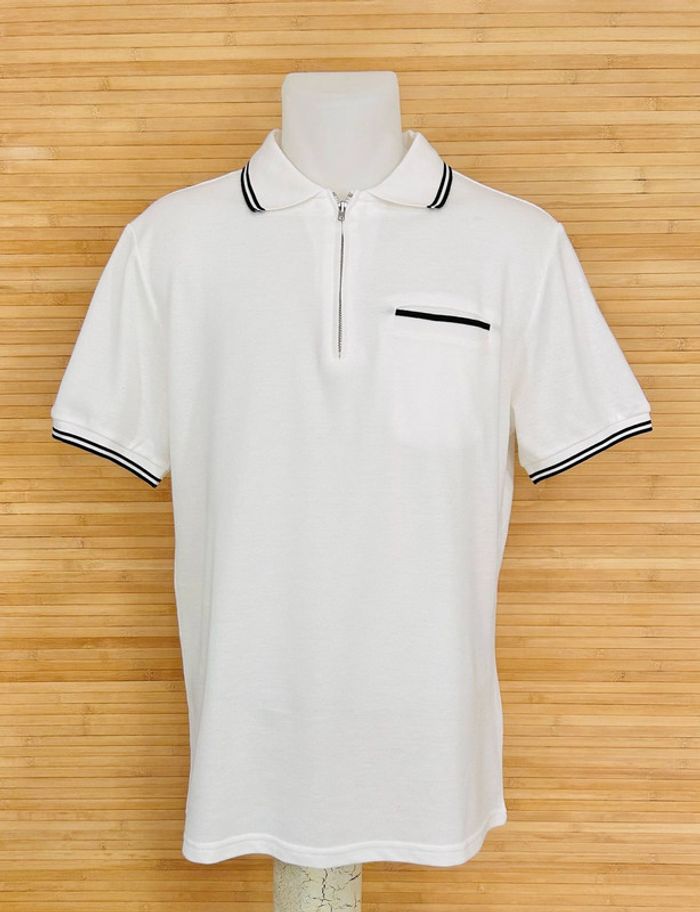 📋 Polo a manches courtes pour homme blanc avec fermeture éclaire.