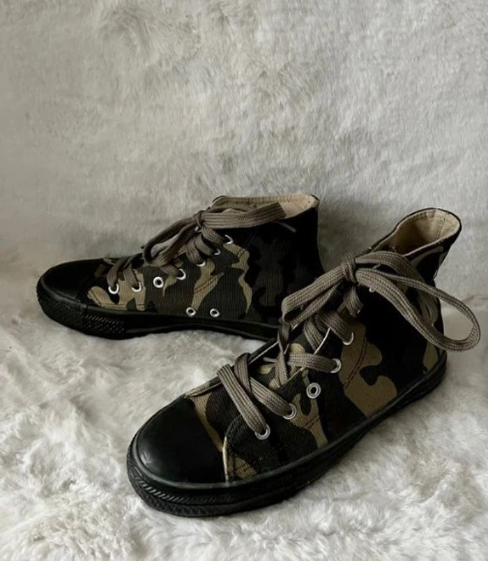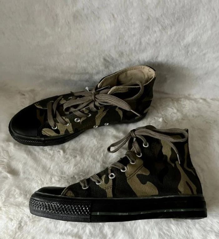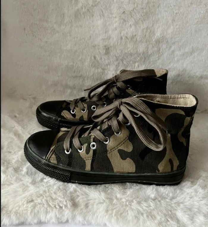 Baskets imprimées militaire kaki, beige, noir pointure 36 - photo numéro 1