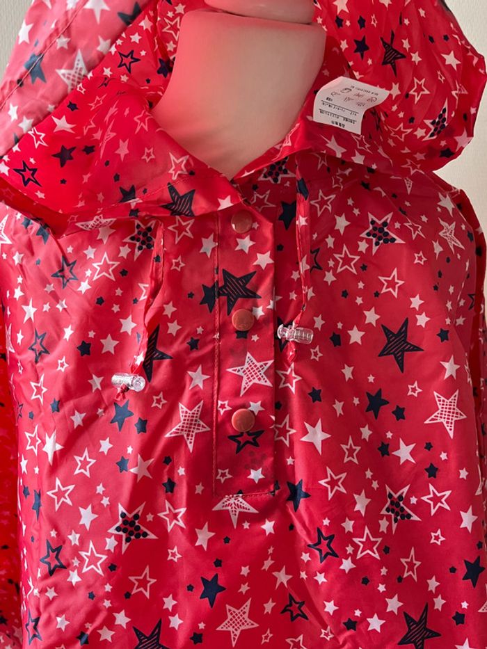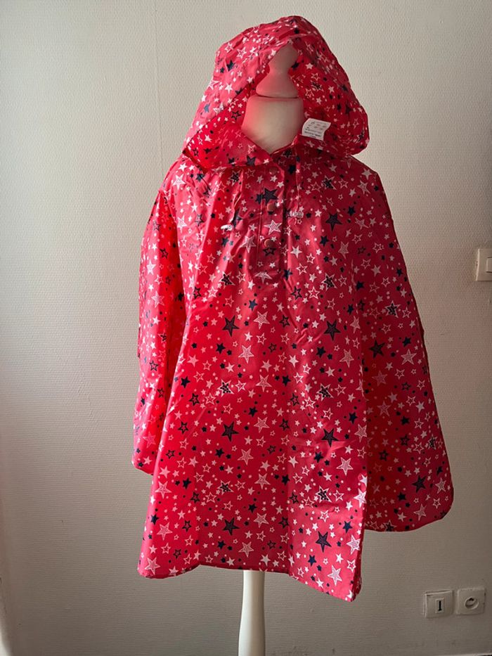 Poncho à capuche imperméable framboise avec des étoiles blanches et bleues marine Neuf avec étiquette
