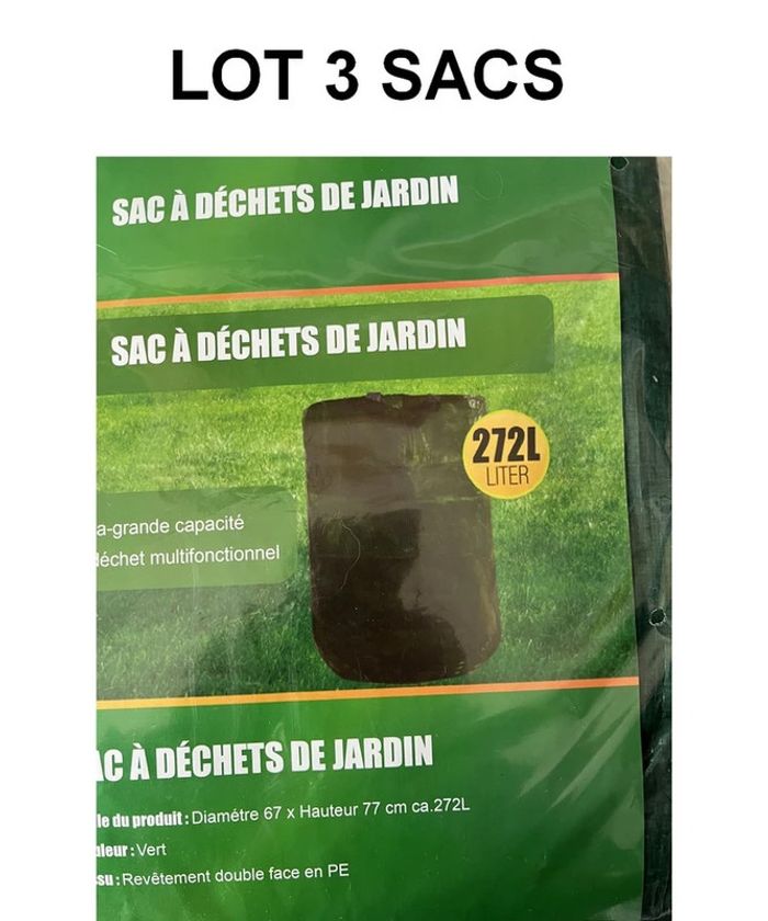 PAS D ENVOI VINTED GO !!! AUTRES TRANSPORTEURS OK Lot 3 Sacs à déchets de jardin verts 272 litres