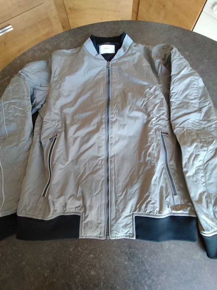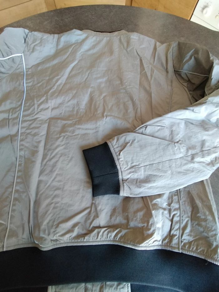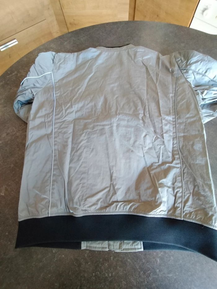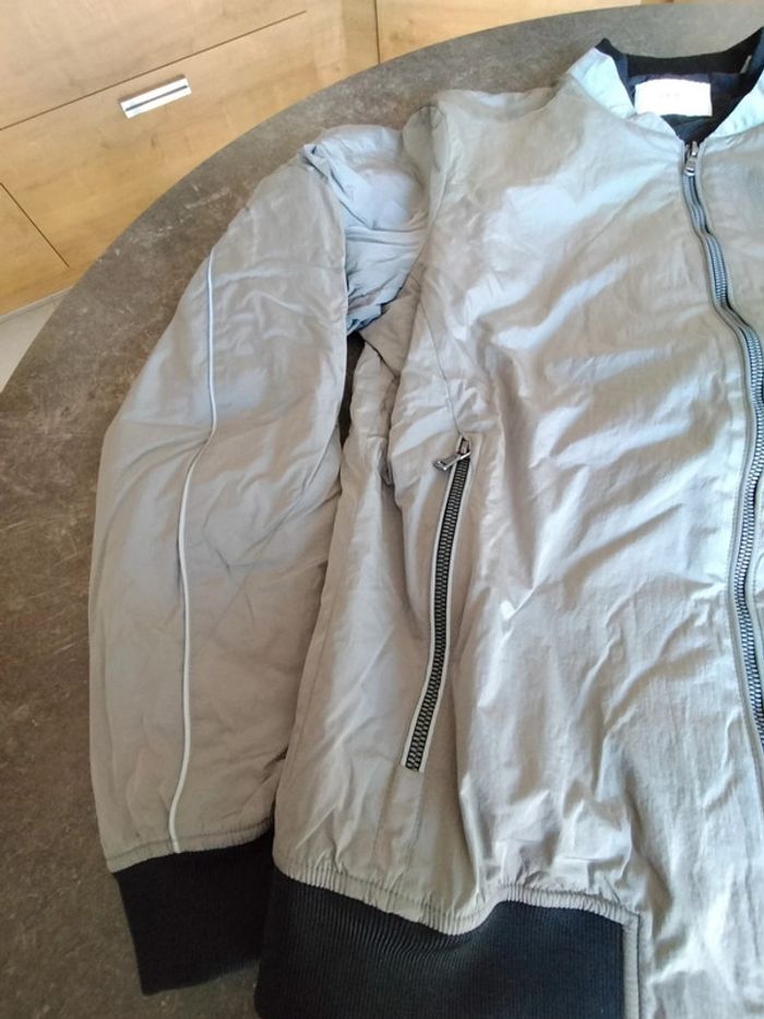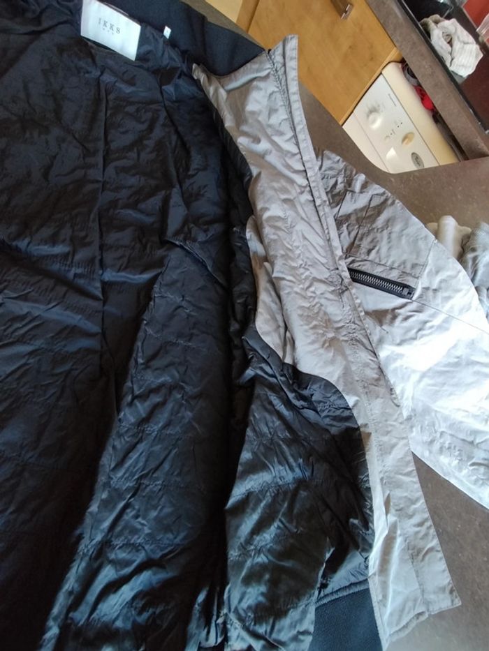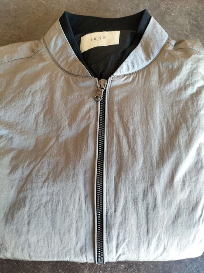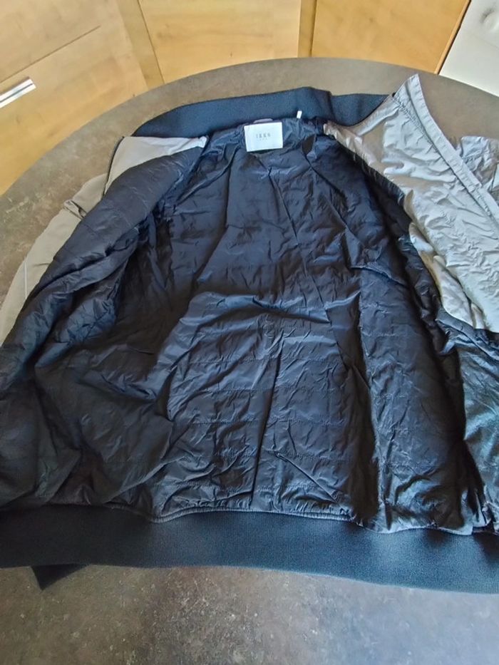 Blouson zippé, poches passepoilées, de couleur argent, et noir sur bord côte , en très bon état Il n'a plus son étiquette composition Ikks