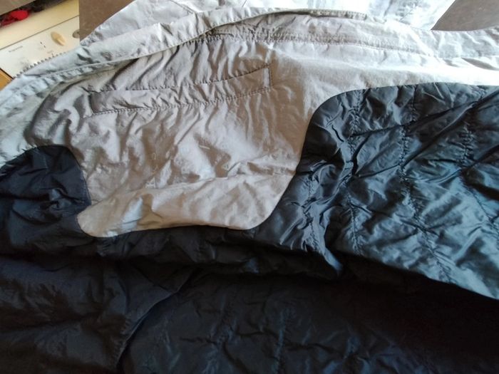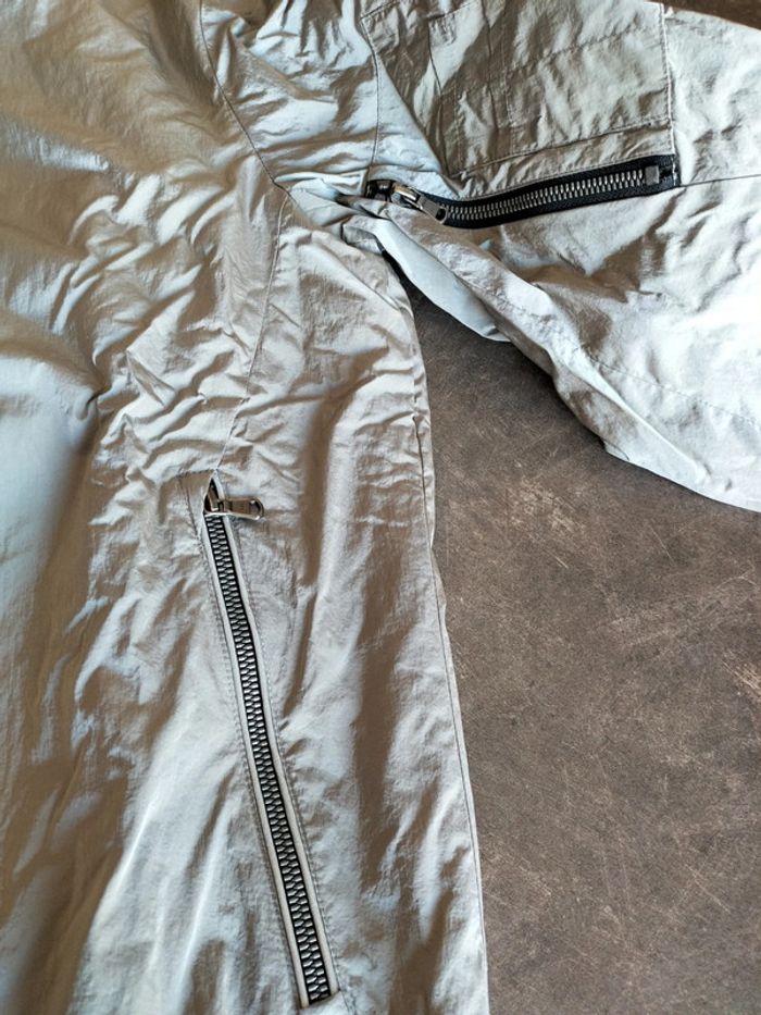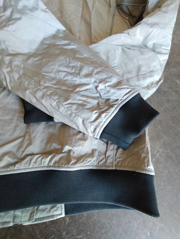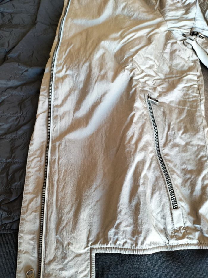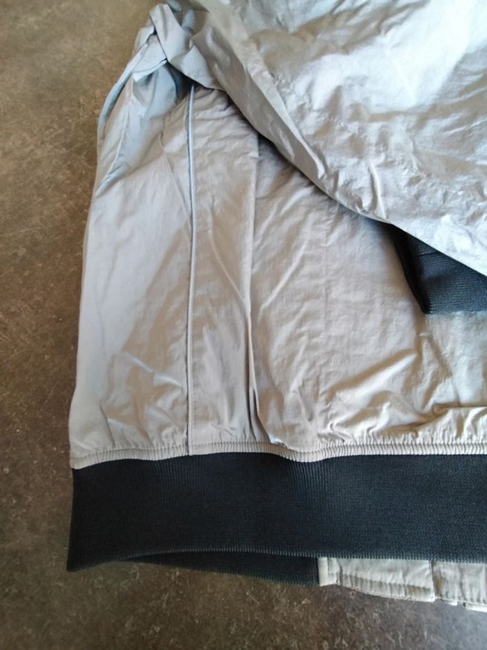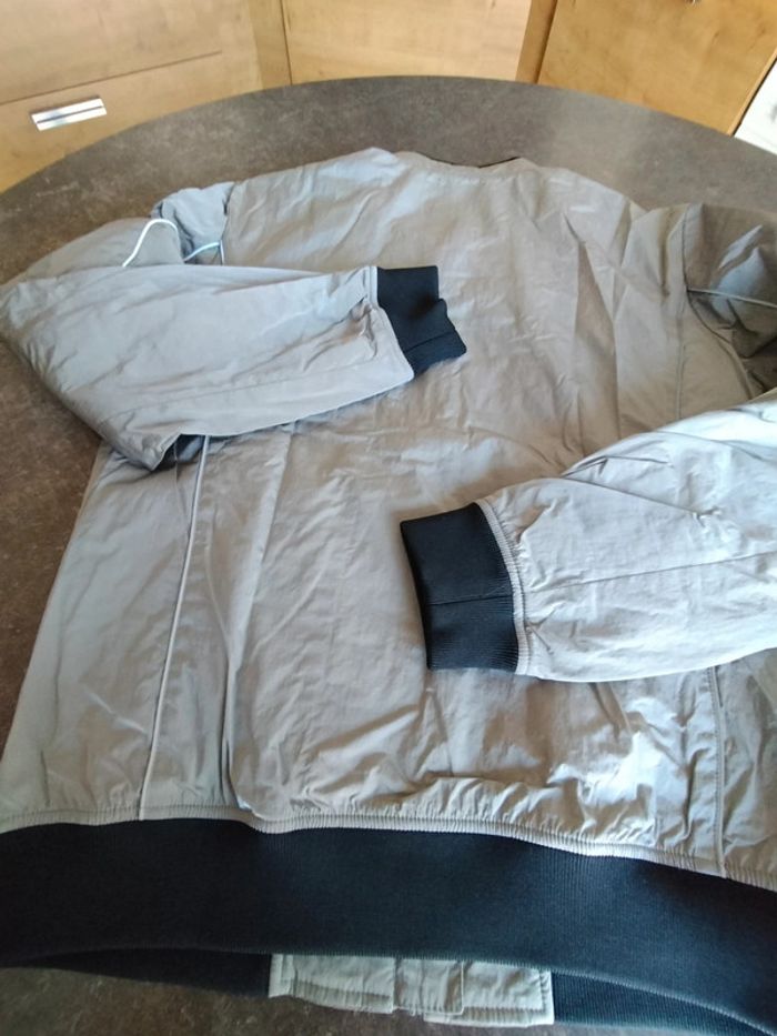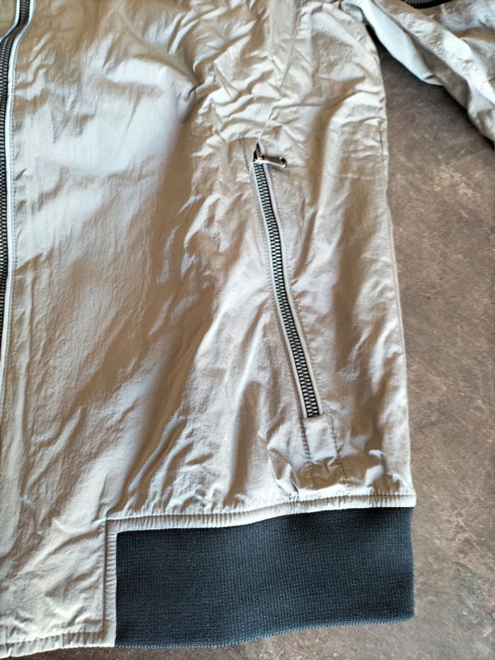 Blouson zippé, poches passepoilées, de couleur argent, et noir sur bord côte , en très bon état Il n'a plus son étiquette composition Ikks