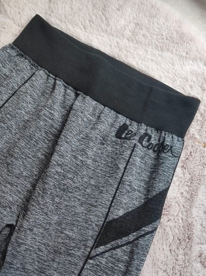 legging extensible et léger, très agréable a porter. Couleur gris / noire. Marque lee cooper en taille L/XL. porter quelques fois, en parfait état ni trou tâches ou déchirures.