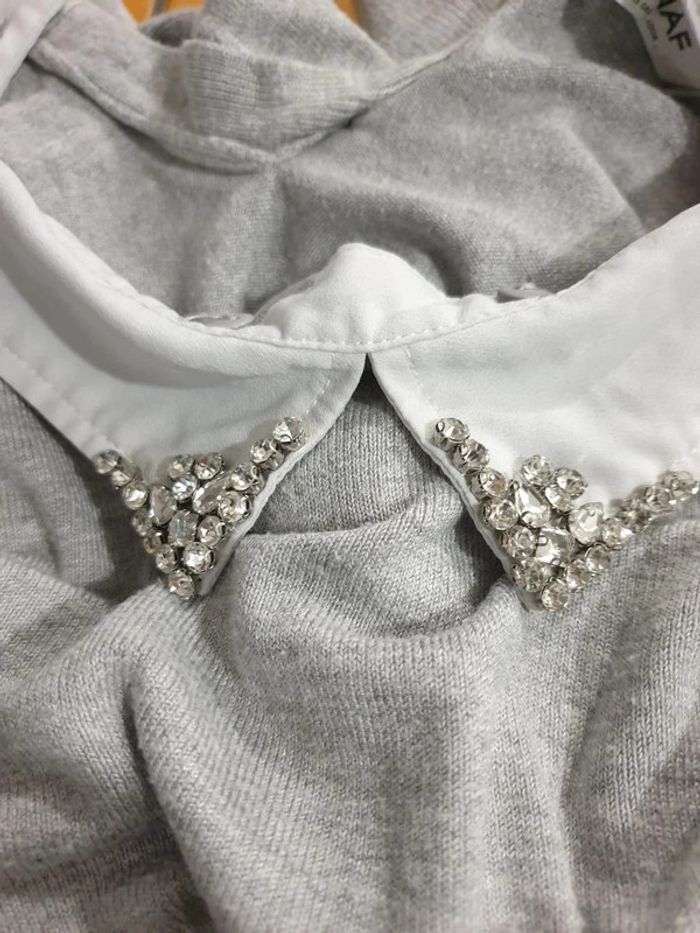 Pull femme col amovible Naf Naf S gris clair - photo numéro 5