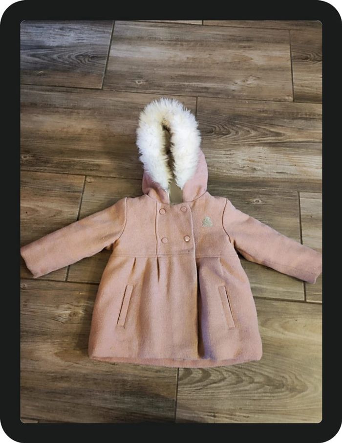 Manteau avec capuche fourrure rose Lulu castagnette Taille 24 mois