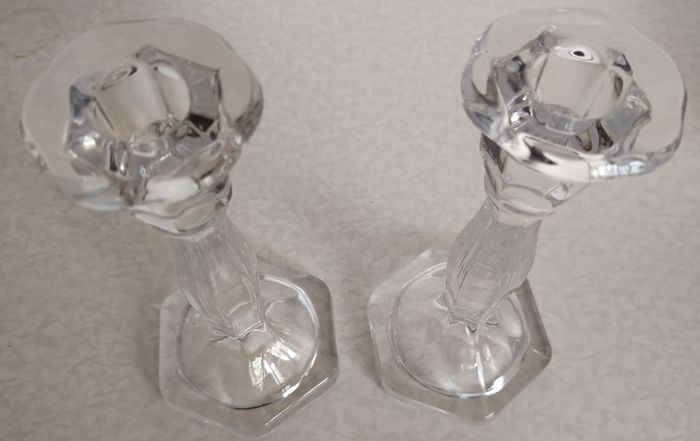 Paire de bougeoirs En verre Translucide Très Bon état Base Diamètre 9 cm Diamètre Haut 6 cm Diamètre trou bougie 2 cm Hauteur 19 cm