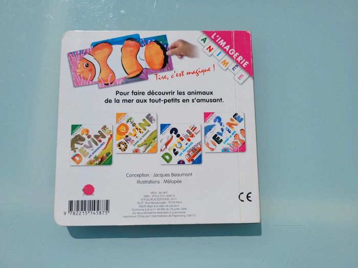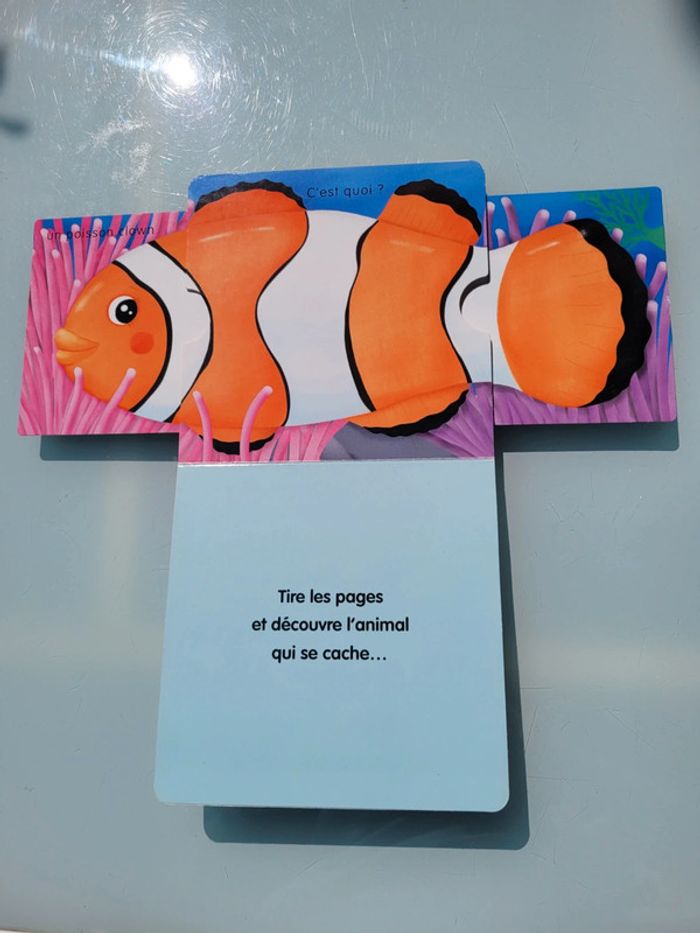 DEVINE DANS LA MER LIVRE SURPRISE ANIMÉ DE TIRETTES Chaque page du livre est animée. En tirant sur une languette, l'enfant va découvrir un … Chaque page du livre est animée. En tirant sur une languette, l'enfant va découvrir un poisson-clown, un requin, un dauphin, un crabe, une pieuvre, une baleine. Très bon état Mes autres livres enfants : #livreenfantmooglou