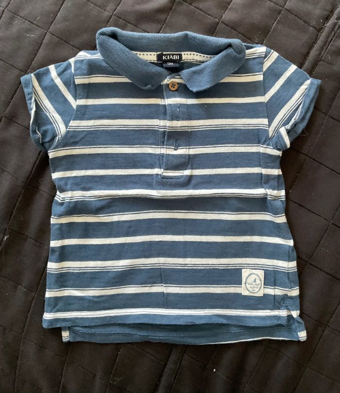 Polo avec col et 3 boutons sur le devant Bleu avec rayures blanches En coton Marque Kiabi Taille 1 an, 12 mois