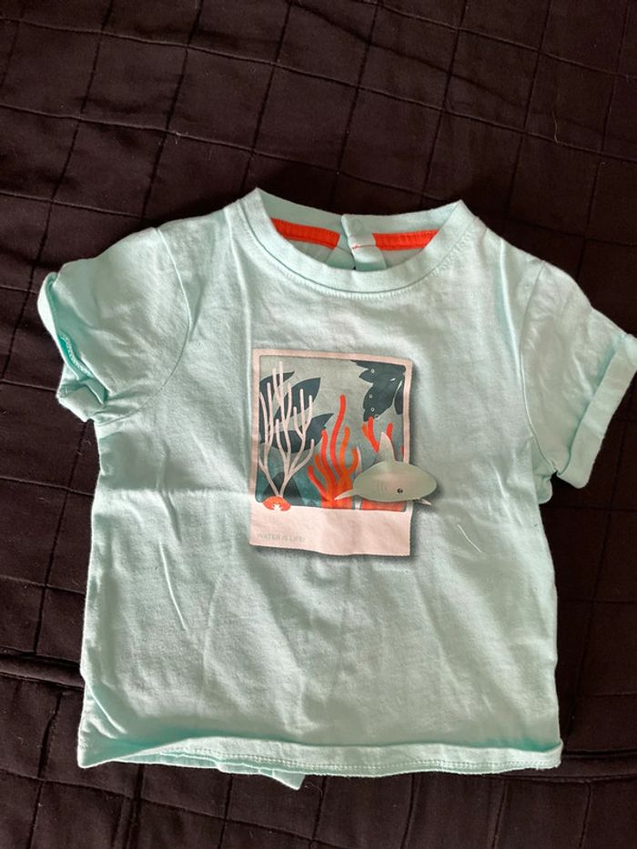 Tee shirt à manches courtes Vert clair Thème sur la mer Fermeture au dos avec pressions : très pratique! Obaibi Taille 6 mois (68 cm)