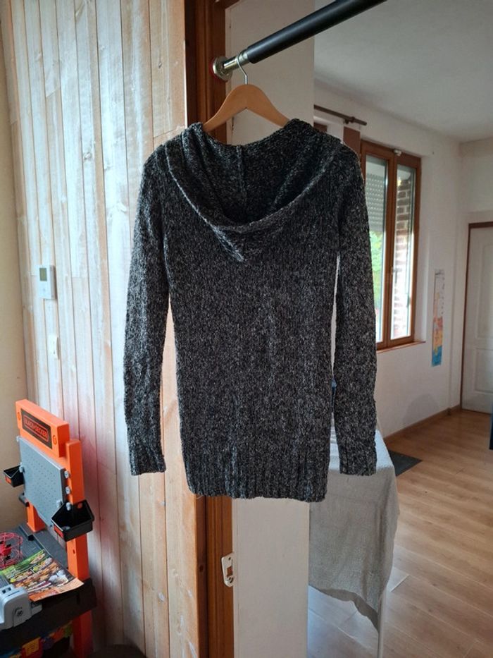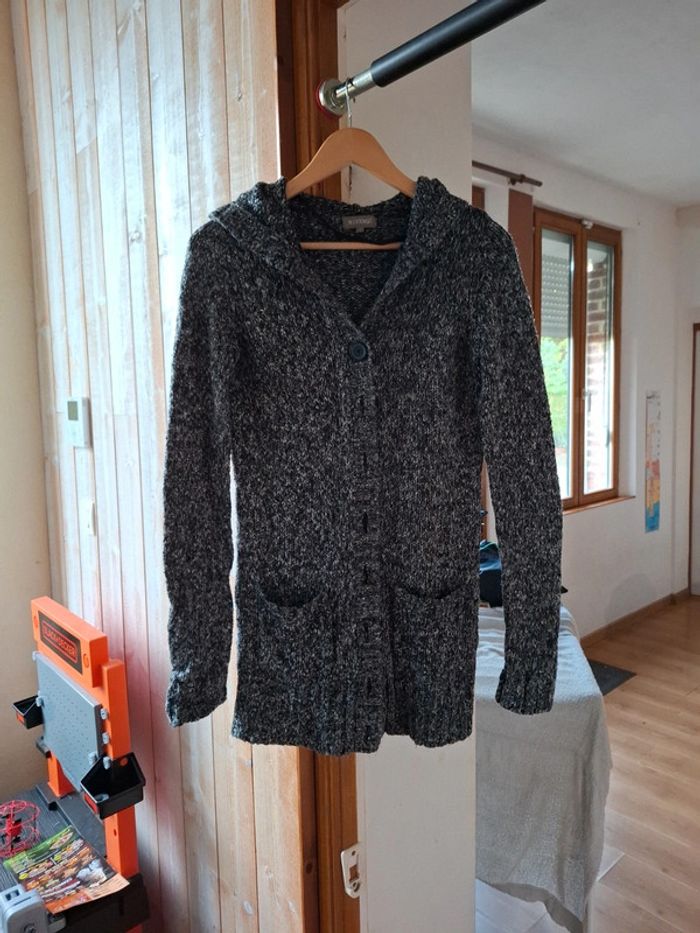 Gilet long fermeture à boutons avec capuche #angy7777_femme