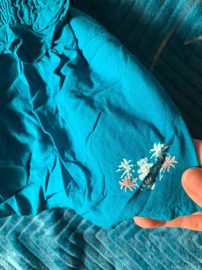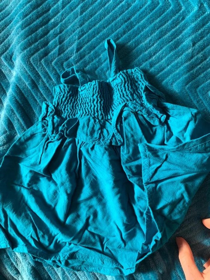 Turquoise Tee shirt été à bretelles Froissé mais en bon état