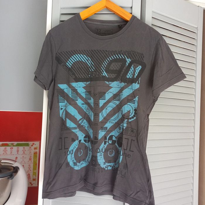 Tee shirt gris à motifs bleu C&a Taille m