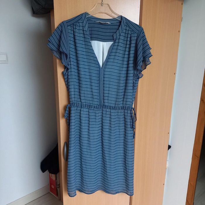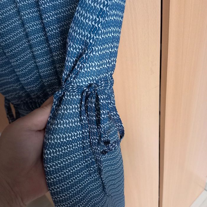 Robe bleue à motifs géométriques Col v Noeuds à la taille Fluide et légère Taille 40 H&m