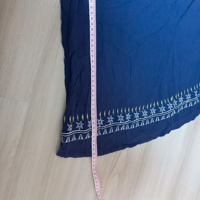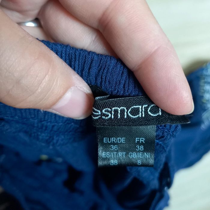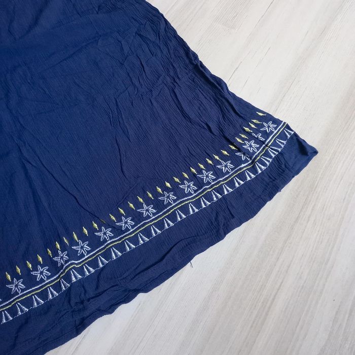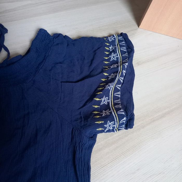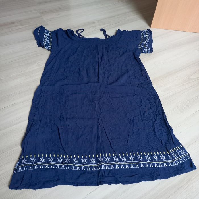 Robe bleu épaules dénudées et petites bretelles Détails brodés au bas de la robe et sur les manches Esmara Taille 38