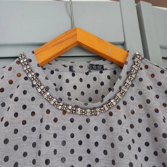 Blouse grise avec pois transparent Strass au col Zara Taille s