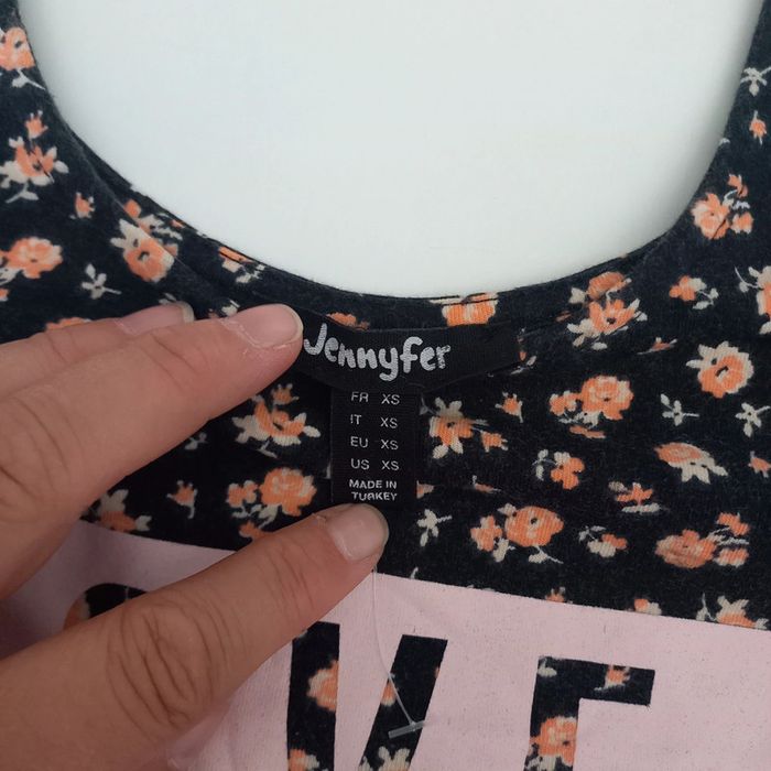 Tee shirt noir fleuri avec inscription Jennyfer Taille xs