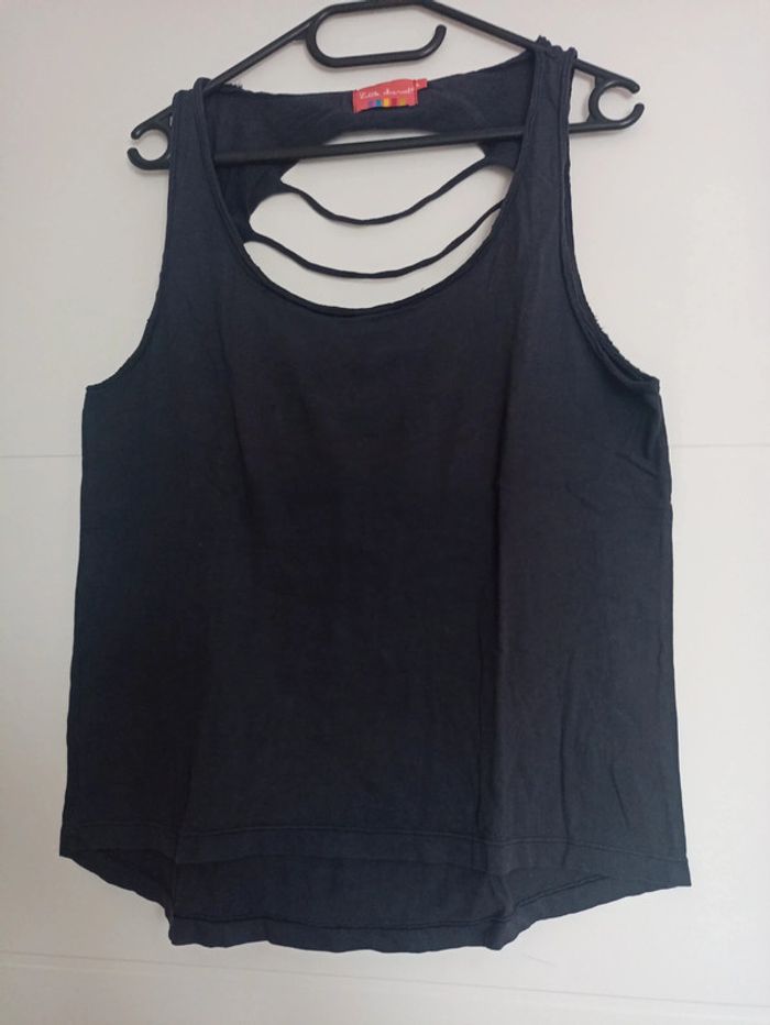 Débardeur long - larges bretelles - devant plus court - dos avec lanière jusqu'au milieu - col rond, échancré - 100% coton - couleur noir - marque : LITTLE MARCEL - taille L - en parfait état