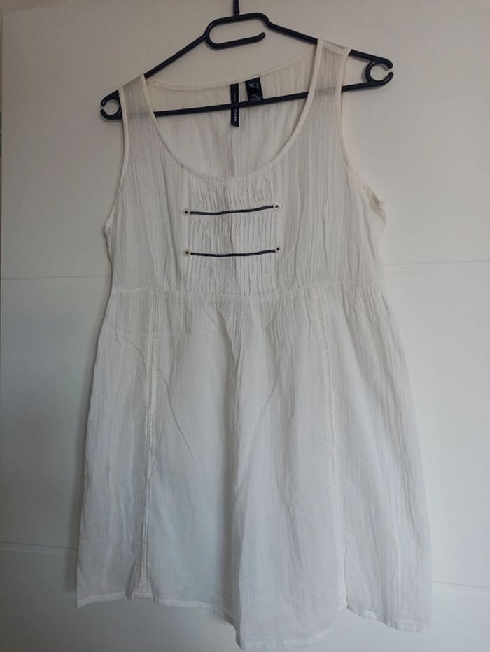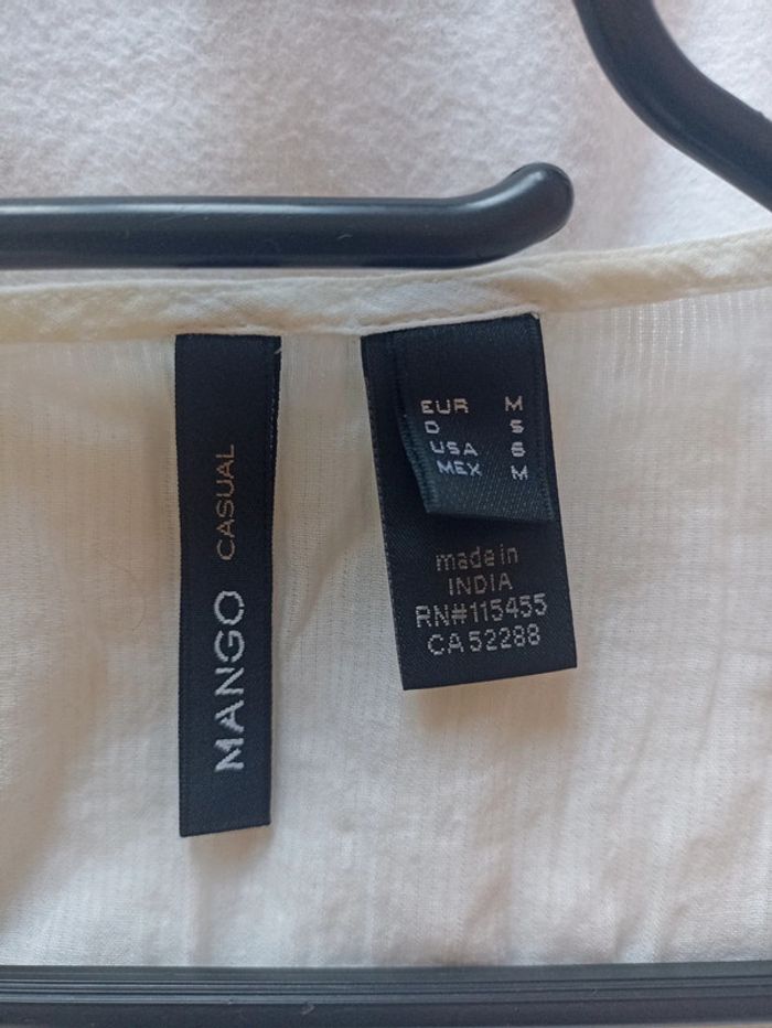 Tunique manches courtes, encolure en rond), couleur blanc), 100% coton, taille M, marque Mango, en parfait état.