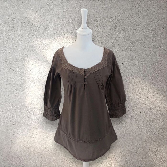Blouse en coton marron et broderies Bonobo taille M - photo numéro 1