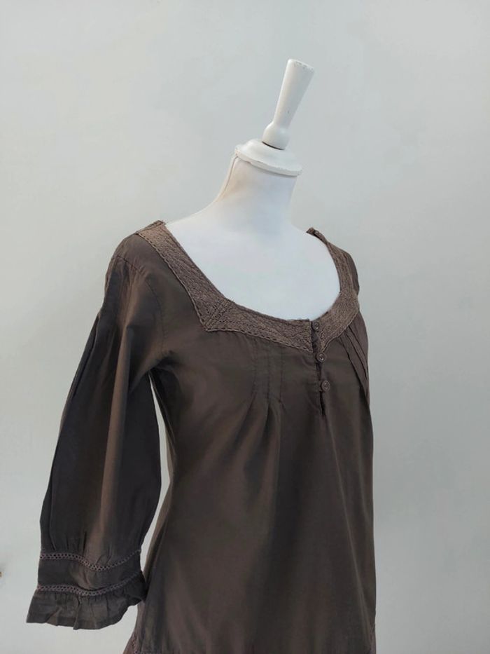 Blouse en coton marron et broderies Bonobo taille M - photo numéro 5