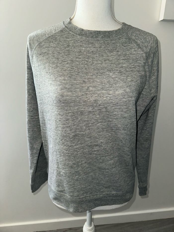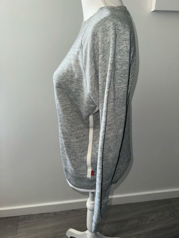 Sweatshirt - Excellent état - Taille 38 équivalent M Dimensions en bas de l’annonce - Marque Levi’s - Gris moucheté et blanc - Deux bandes blanches d’un côté - Intérieur éponge - Pas d’étiquette de matière Dimensions: - 56cm niveau aisselles - 60cm de long